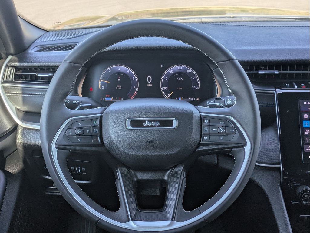 The leather seats in this mid-size suv are a must for buyers looking for comfort, durability, and style. Apple CarPlay: Seamless smartphone integration for the vehicle - stay connected and entertained on the go! Keep your hands warm all winter with a heated steering wheel in this Jeep Grand Cherokee L . This Jeep Grand Cherokee L's Forward Collision Warning feature alerts drivers to potential front-end collisions. This vehicle offers Automatic Climate Control for personalized comfort. Bluetooth technology is built into this model, keeping your hands on the steering wheel and your focus on the road. Protect this mid-size suv from unwanted accidents with a cutting edge backup camera system. Start the vehicle from inside with remote start. This mid-size suv offers Android Auto for seamless smartphone integration. This unit has auto-adjust speed for safe following. Load groceries and much more with ease into the Jeep Grand Cherokee L thanks to the power liftgate.
